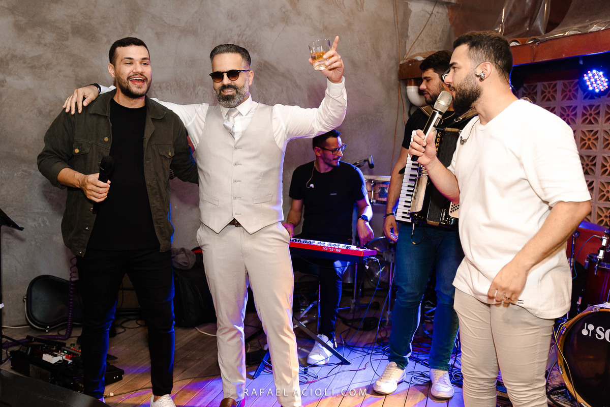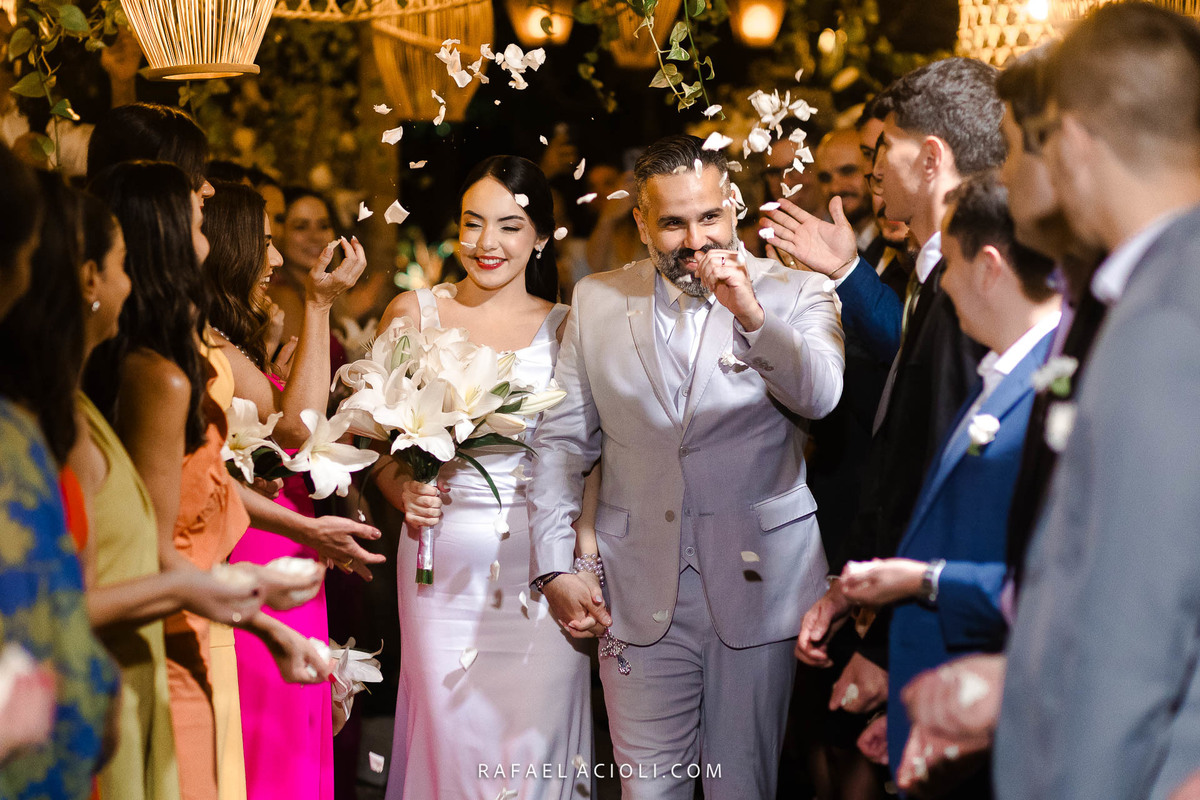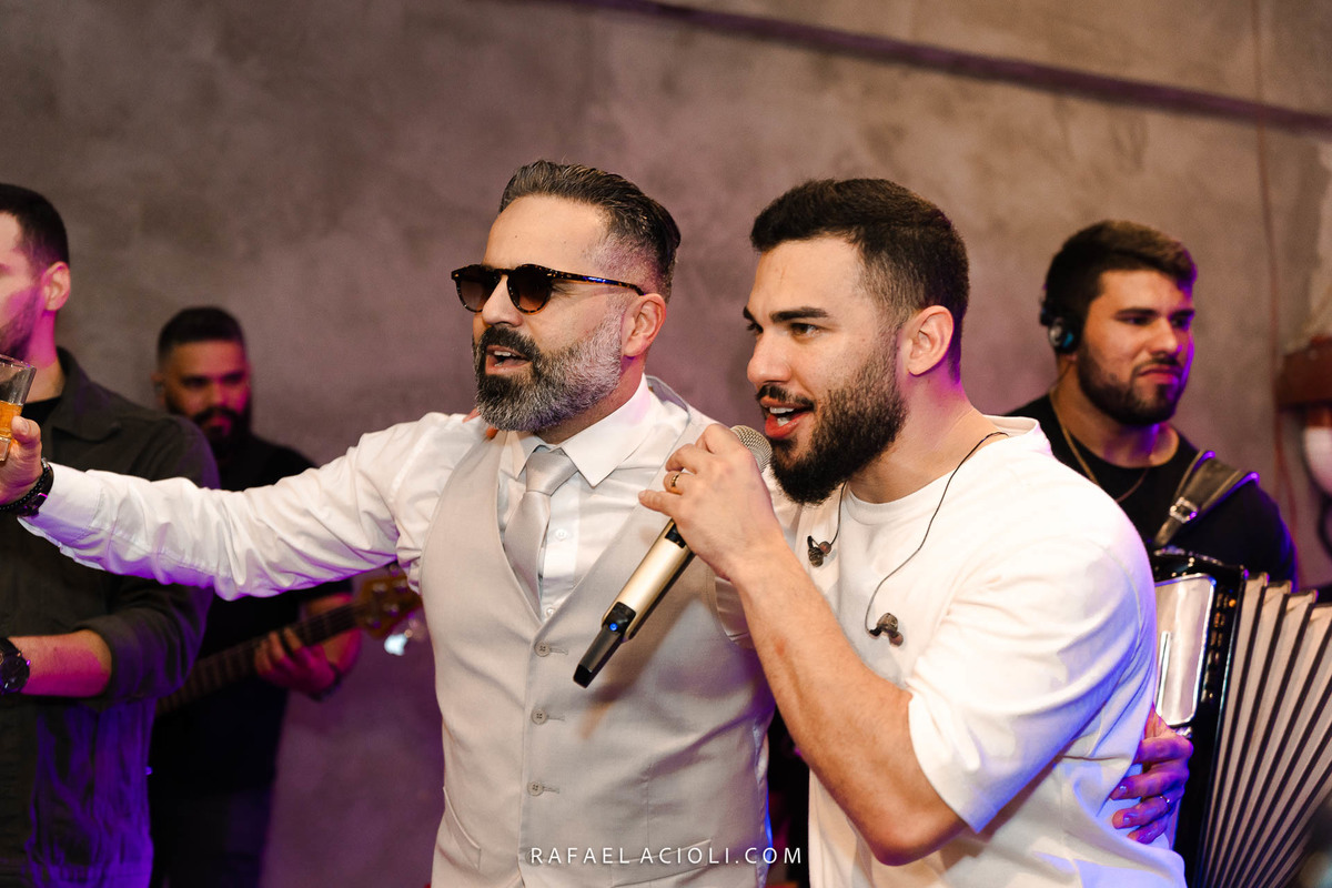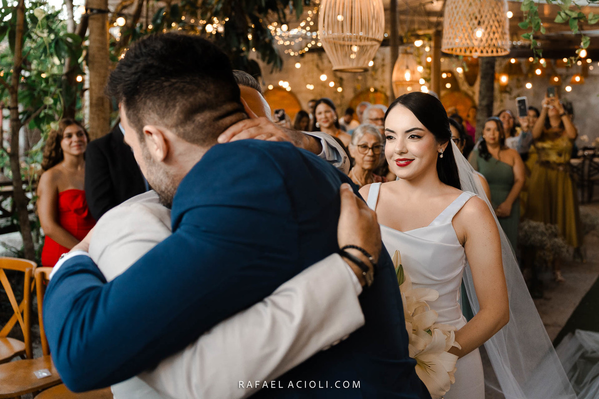 O local escolhido para cerimônia e recepção foi o restaurante No Jardiim em Gravatá. O cerimonial que cuidou de cada detalhe foi NV Cerimoniais. A decoração teve assinatura da Tamy Decor. O bolo foi da Hiolanda Cake Designer e os doces da Doce Bombom. A parte musical ficou por conta da dupla João Lucas e Pedrinho.